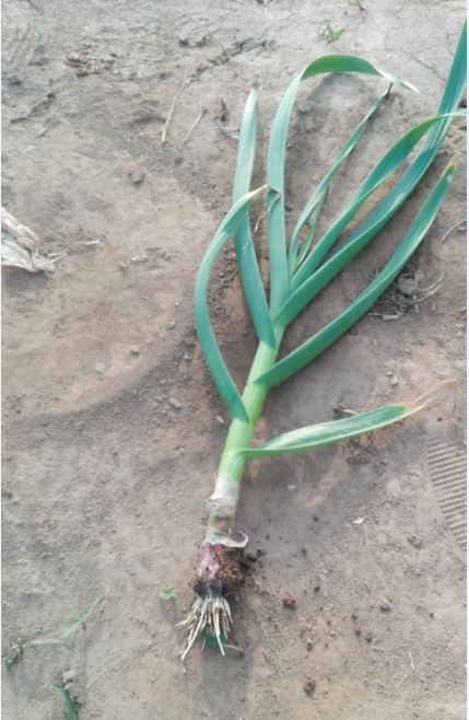 大蒜地块二根系及长势情况。