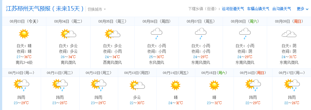 邳州未来15天气象预报情况