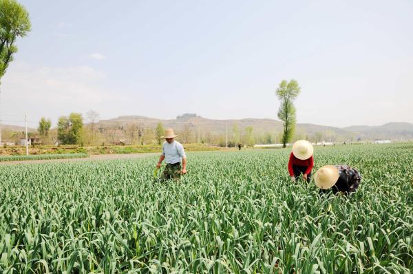 徽县农民正在抽蒜薹
